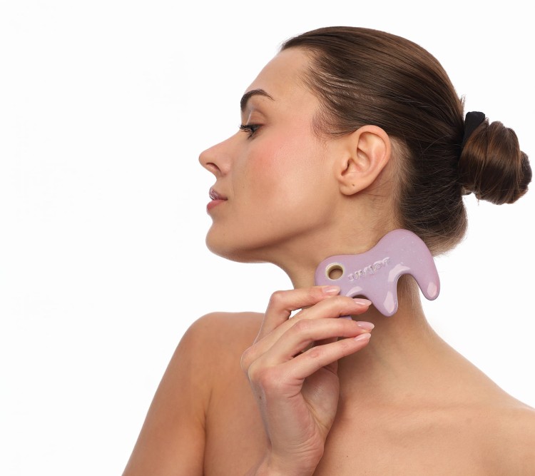 Głowa: tradycyjny masaż skóry głowy wykonujemy na czystej skórze lub z użyciem wcierki olejowej. Przesuwając się od linii włosów na czole i skroniach w kierunku tyłu głowy. Cały czas lekko dociskając i wykonując malutkie kółeczka. Do masażu pobudzającego pracę cebulek włosów i rozluźniającego napięcie mięśni i powięzi na głowie używamy części z ząbkami. Część z jednym łukiem (górna krawędź) nadaje się do masażu karku oraz szyi. Dzięki szerokiemu rozstawowi punktów masujących, grzebień nie plącze włosów.