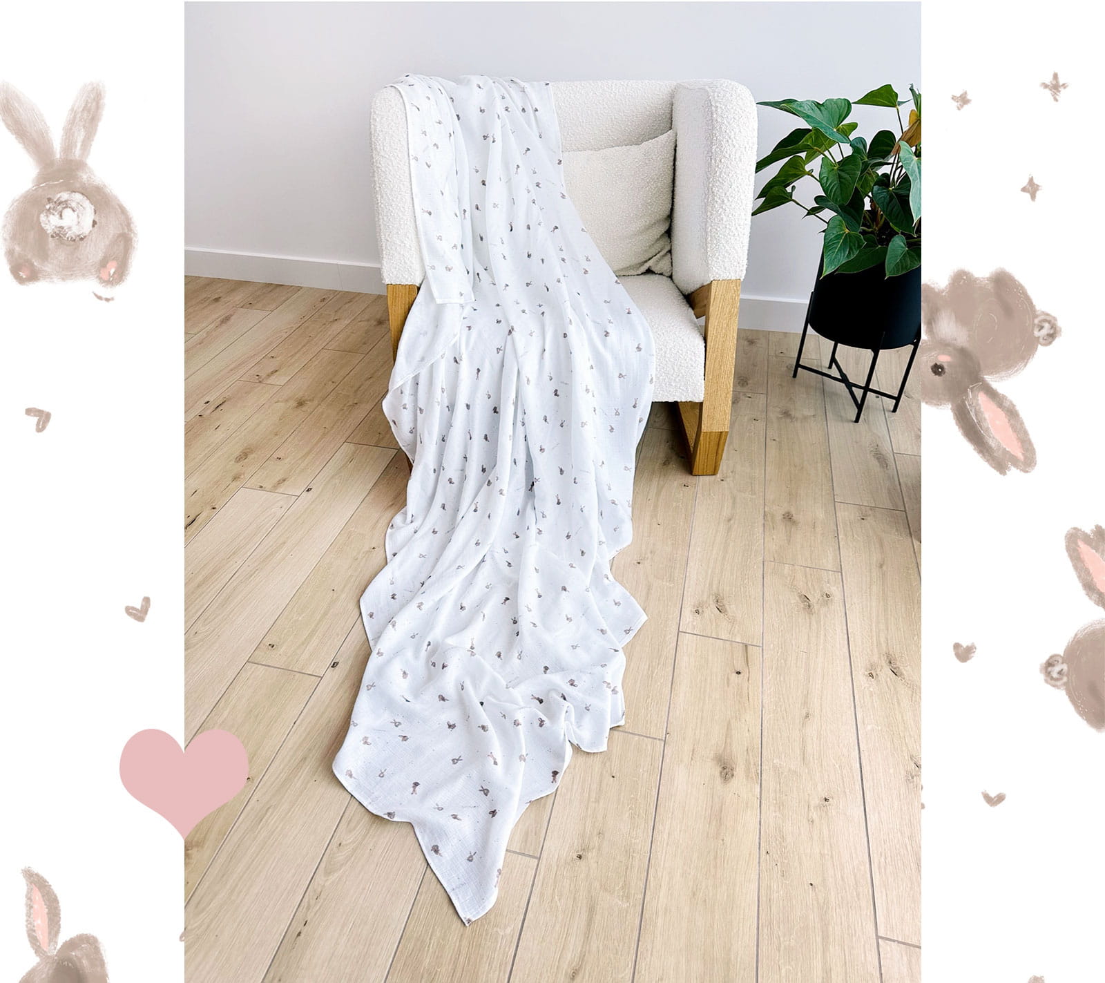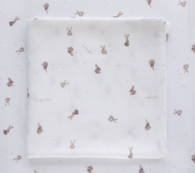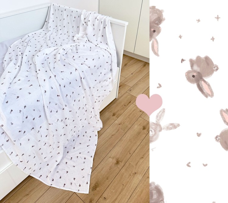 Lekka narzuta muślinowa do spania 150x200cm - beżowe króliczki