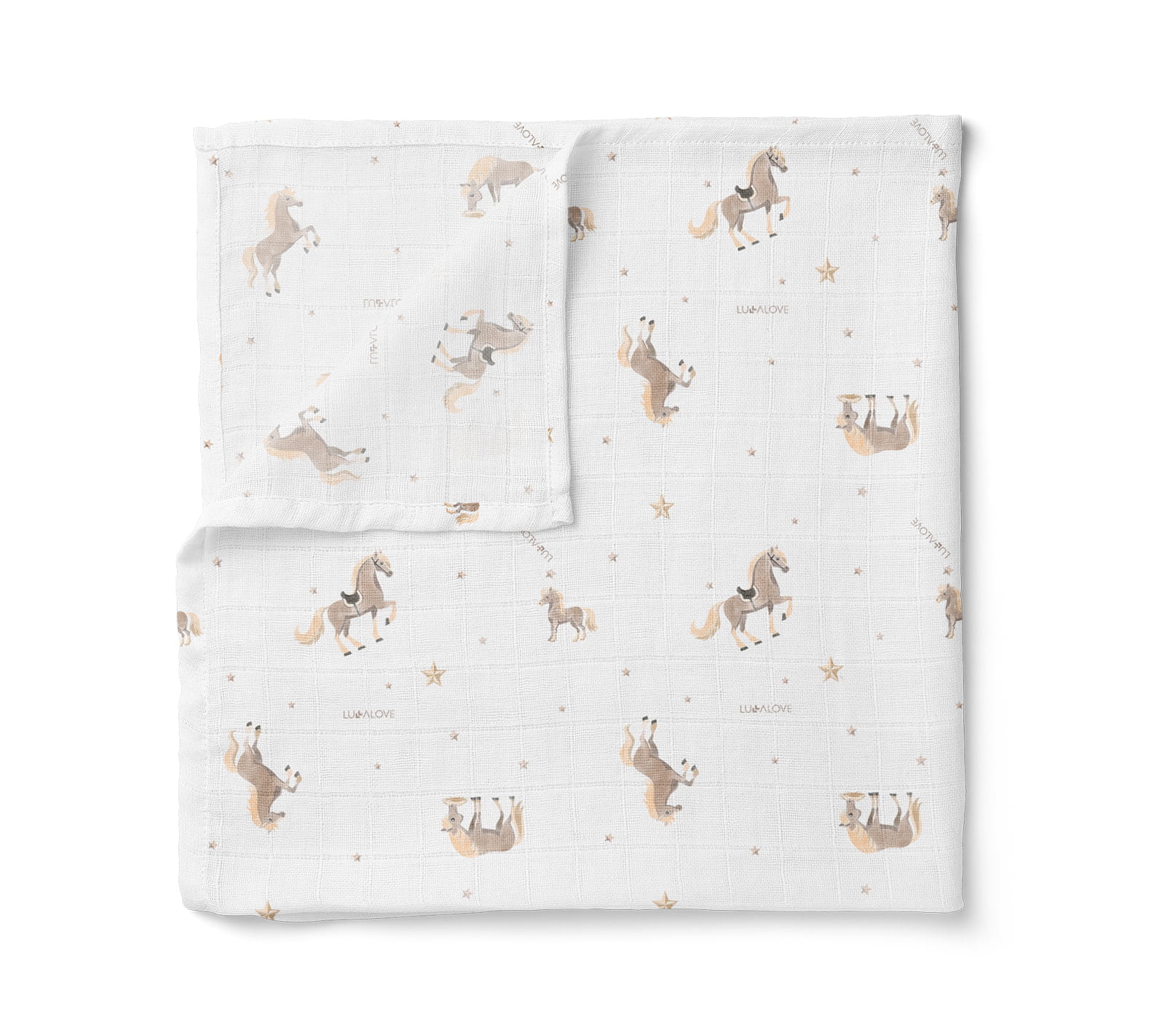 Lekka narzuta muślinowa do spania 150x200cm - konie