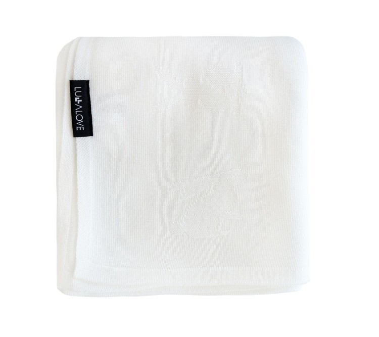 Kocyk wykonany z przędzy bambusowej o lekkim i przewiewnym splocie z króliczkami.