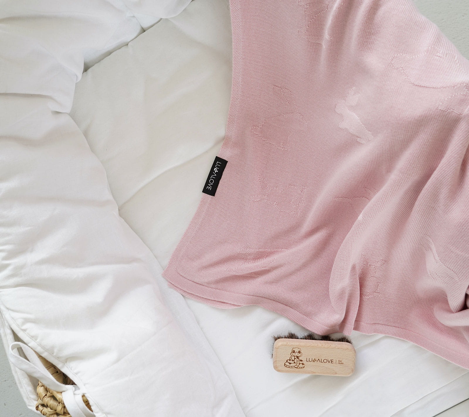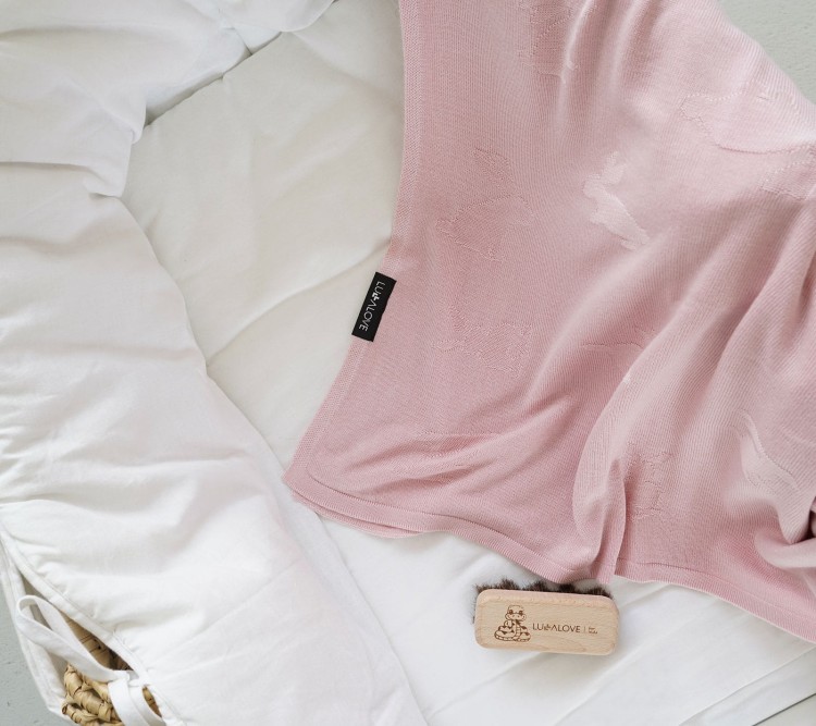 Lekki kocyk bambusowy dla dzieci, króliczki - pudrowy róż