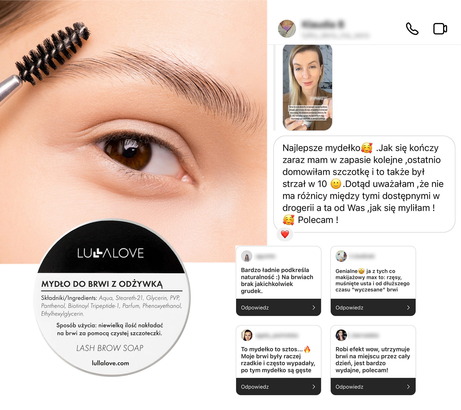 Daje piękny i naturalny efekt jakby laminowanych brwi, a składniki odżywcze wpływają na wzrost i kondycję brwi.