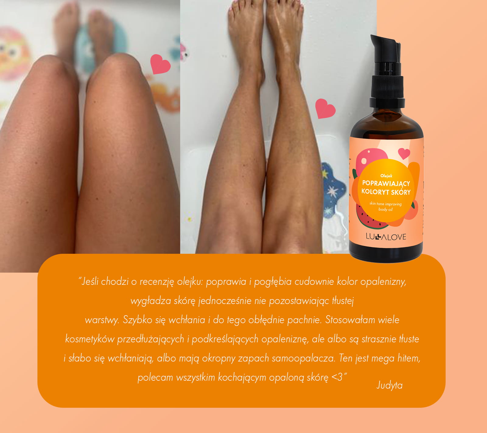 Nie jest to produkt samoopalający ( jeśli takiego szukasz, sprawdź naszą mgiełkę stopniowo opalającą). Olejek ma na celu ujędrnić skórę i poprawić jej koloryt, przedłużając przy tym efekt naturalnej opalenizny oraz działanie samoopalaczy. Olejek pięknie poprawia także koloryt naturalnego koloru skóry (nieopalonej). Zaleca się stosowanie go codziennie po kąpieli w okresie, kiedy chcemy, aby nasza skóra miała radosny odcień.