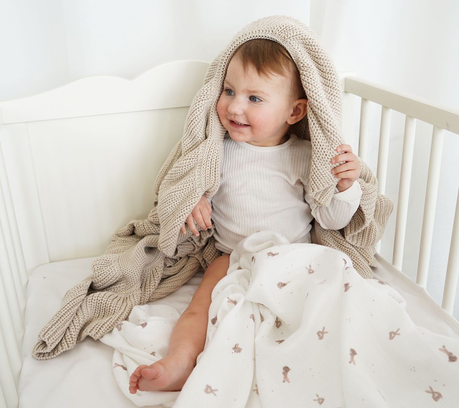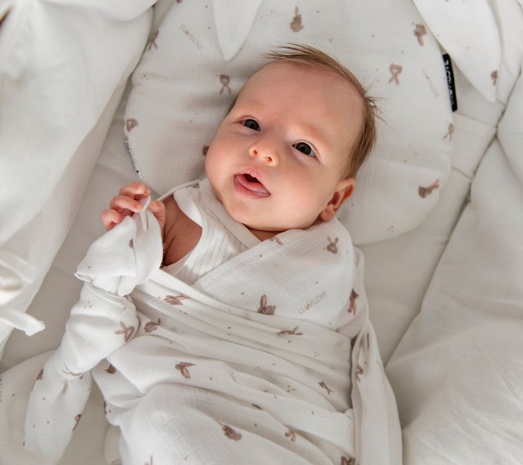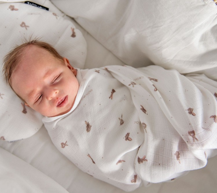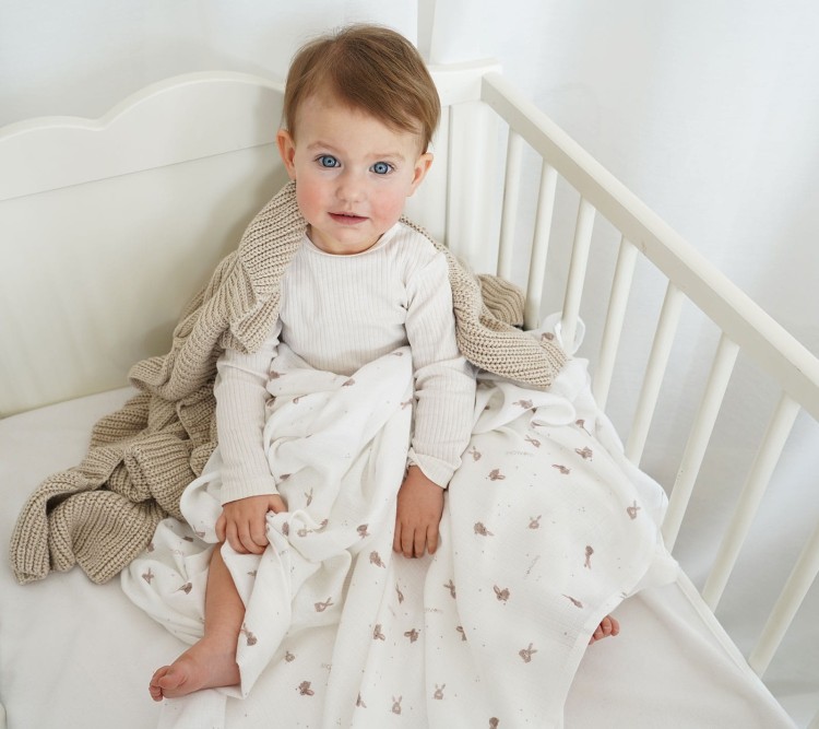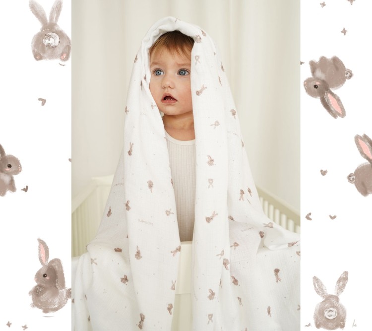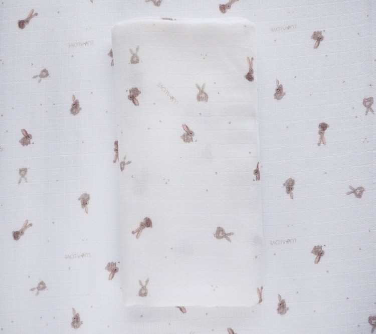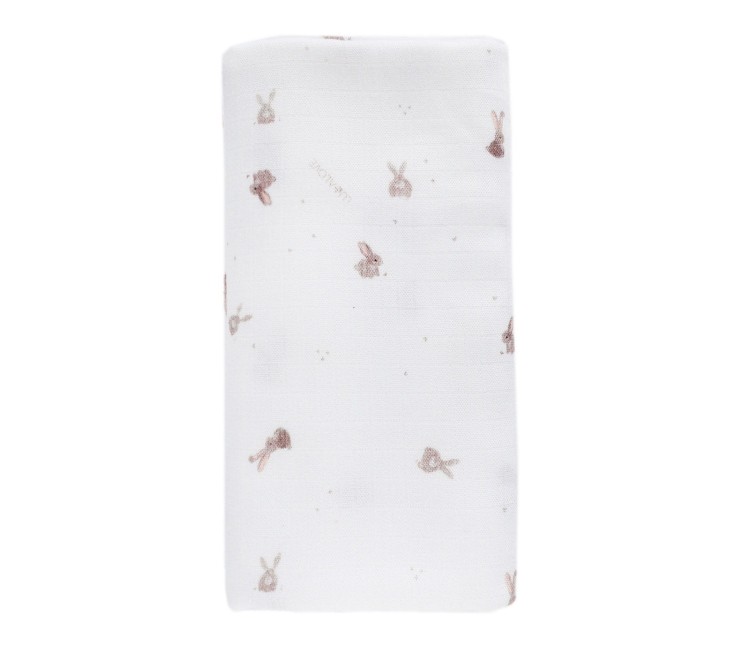 Otulacz muślinowy 100x100cm - beżowe króliczki