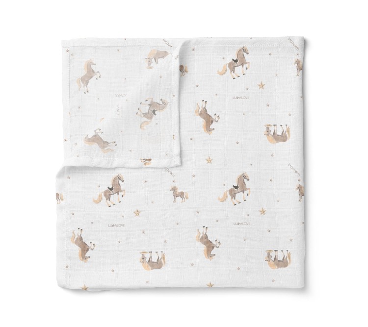 Otulacz muślinowy 100x100cm - konie