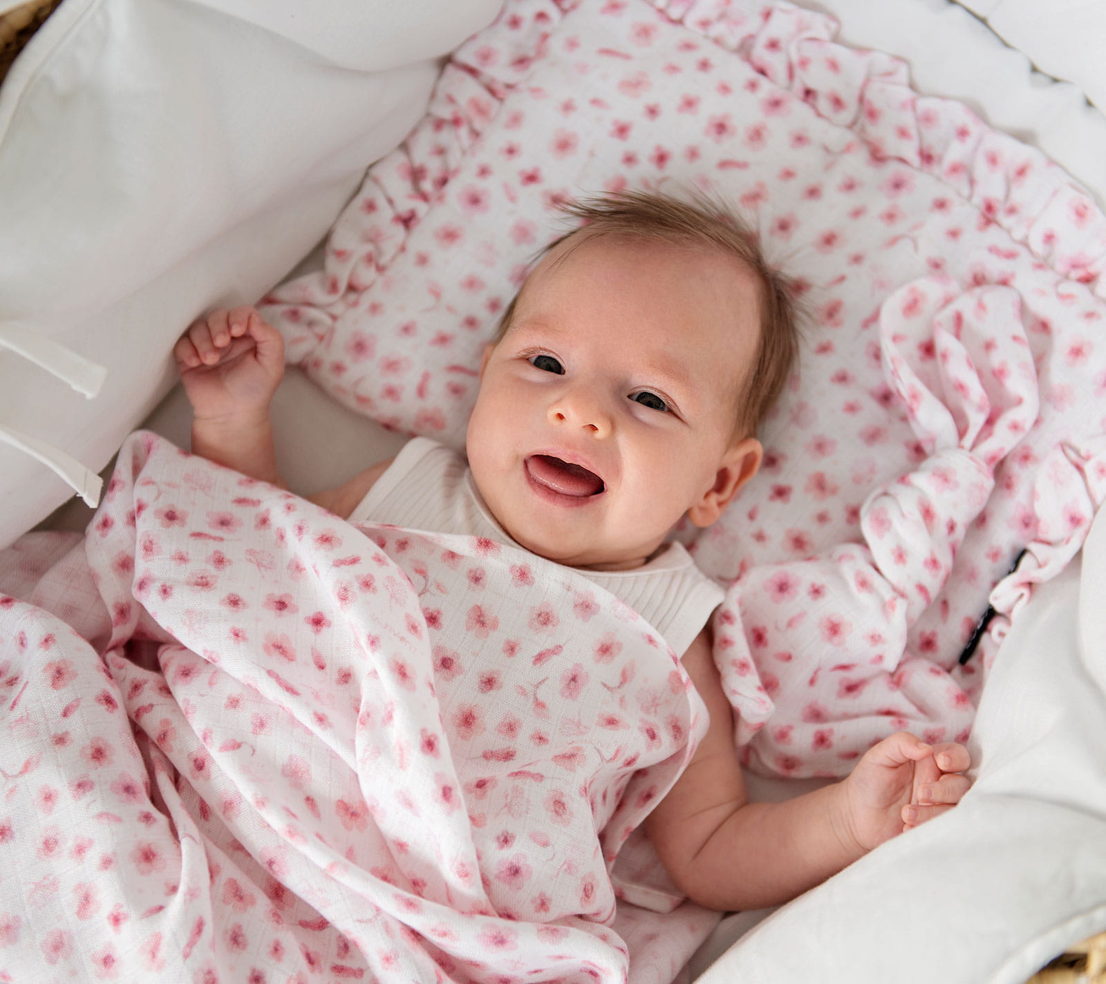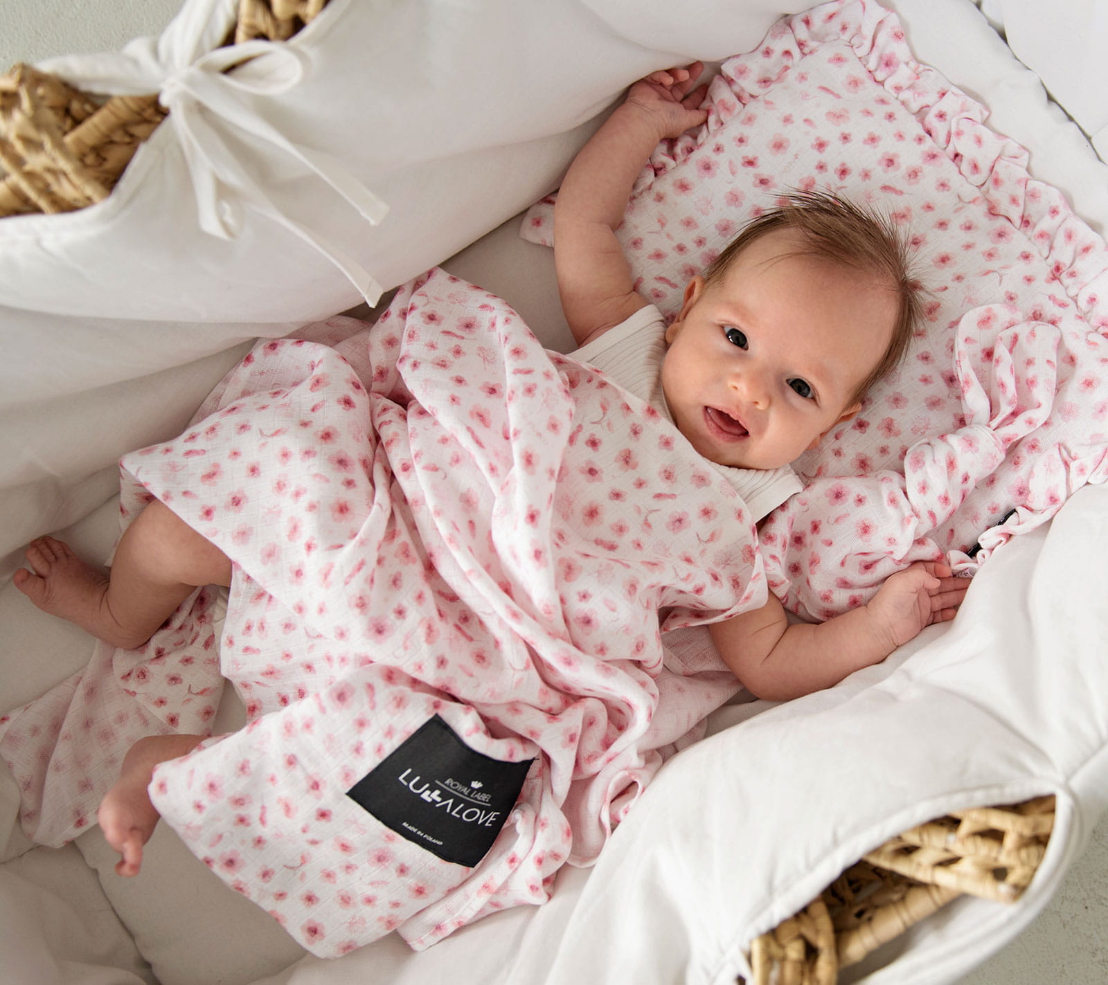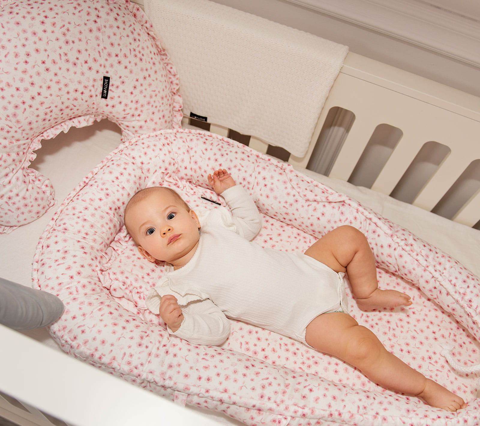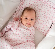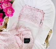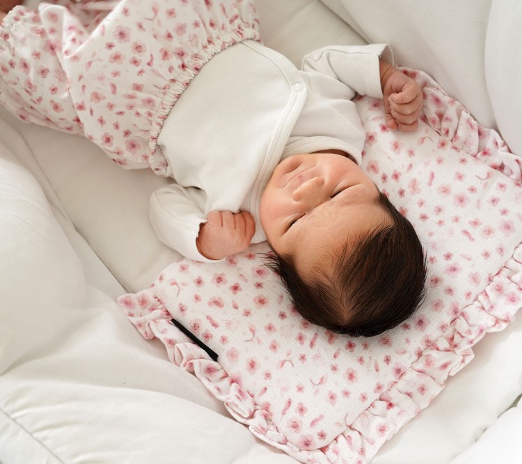 Płaska poduszeczka z falbankami wykonana z muślinu, z lekkim, całorocznym wypełnieniem. Idealnie sprawdzi się do wózka czy kosza Mojżesza. Specjalne przeszycie zapewnia bezpieczne pranie.