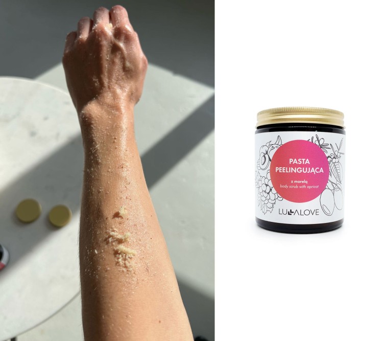 Pasta ma gęstą konsystencję i idealnie sprawdzi się do peelingu całego ciała, a w szczególności okolic biustu, dekoltu, szyi i ramion. Czyli miejsc najczęściej odsłanianych latem.