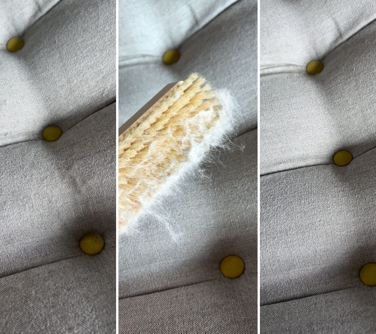 Świetnie sprawdzi się w domu i w podróży. Jest delikatna dla ubrań, a przy tym doskonale zbiera nieczystości. Szczotki używamy na sucho.