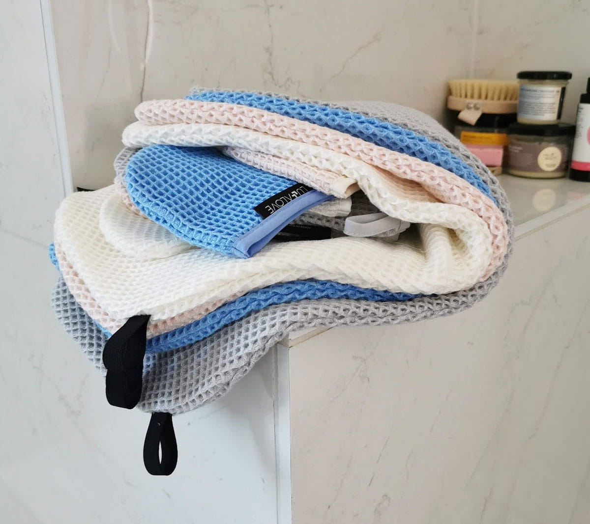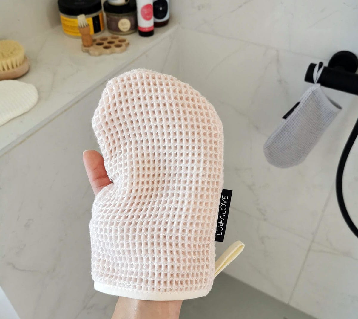 Pomysłowa rękawica do twarzy i ciała, wykonana z super delikatnego bambusa o niepowtarzalnej strukturze wafla.