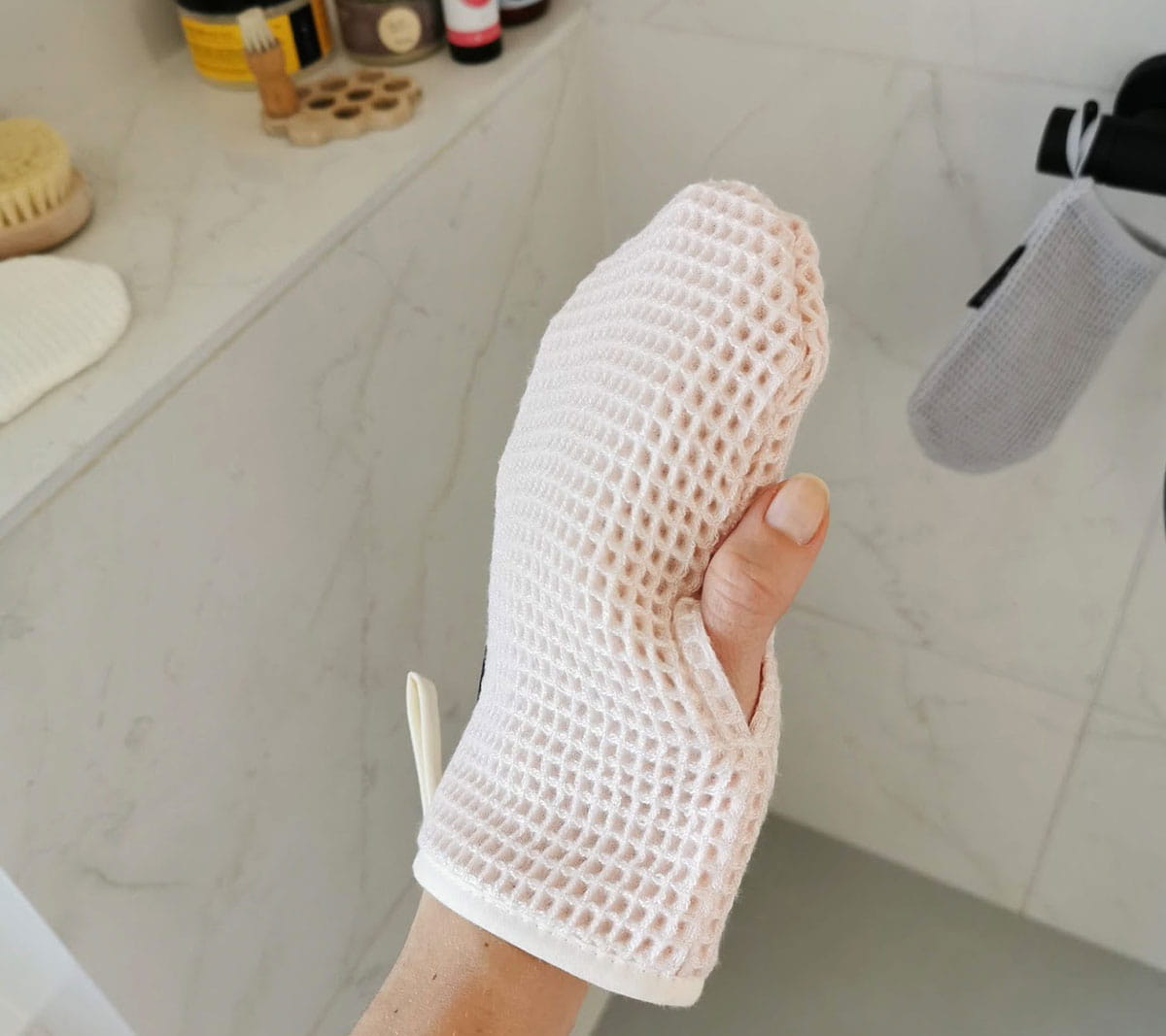 Rękawica do twarzy i ciała - różowy kwarc
