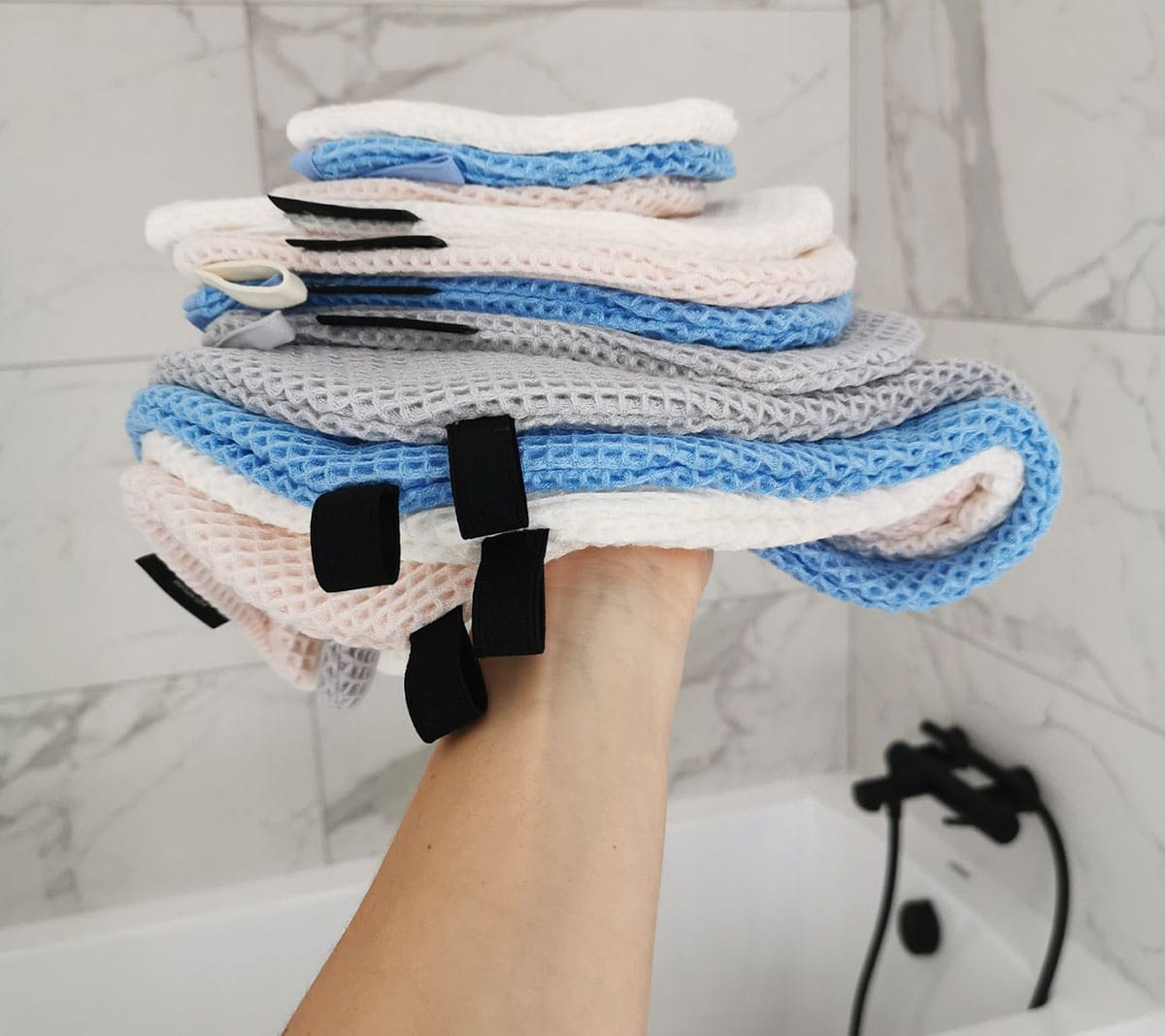 Możesz używać jej w wannie, pod prysznicem czy na siłowni, do przetarcia twarzy. Po użyciu odłóż ją do wyschnięcia, jak ręcznik.